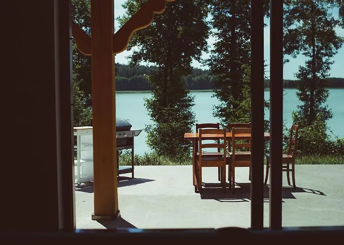 Situated around 5 km from Rynskie, the 2-bedroom Dom Z Linia Brzegowa Nad Jeziorem Rynskim - Mazury Wejdyki invites guests to relax at a terrace.